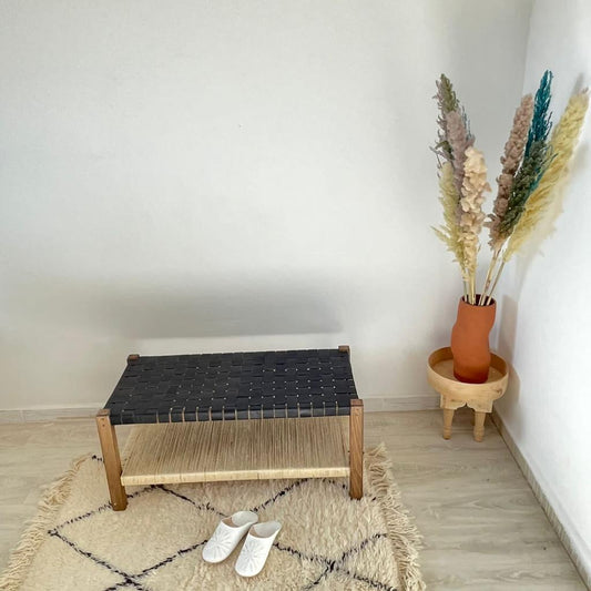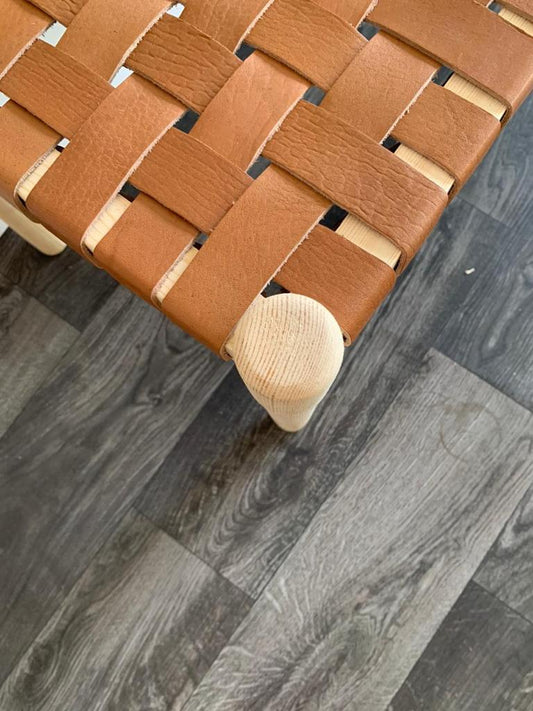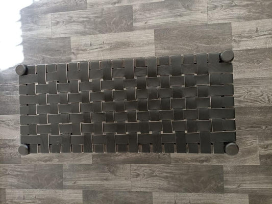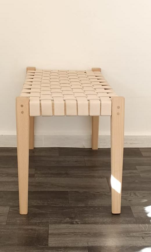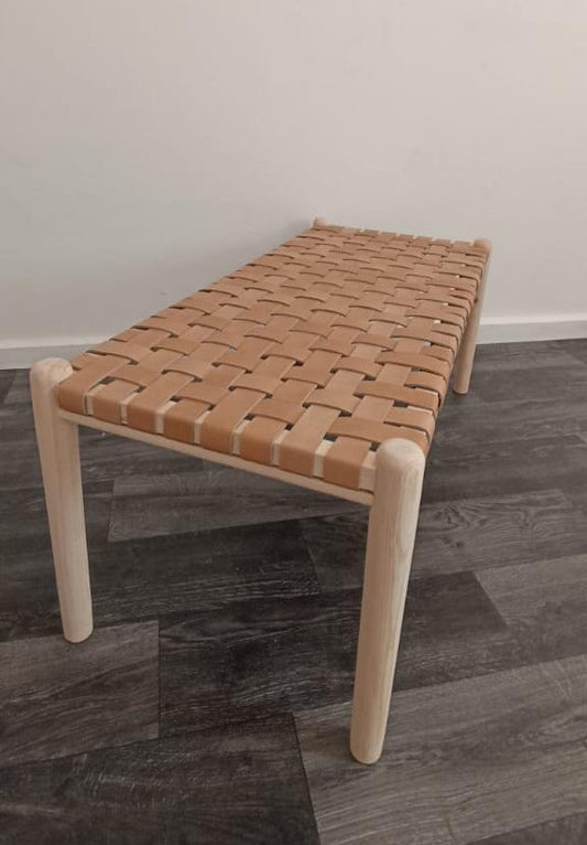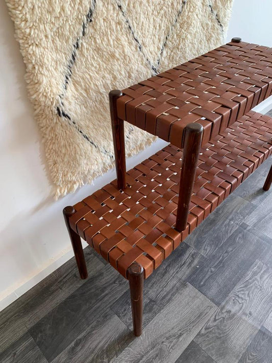 Woven Natural, Leather Strap Bench, Saddle, -HANDMADE, Entryway bench, and of bed benche, Teak Woven Leather, Benches Woven Leather Stool